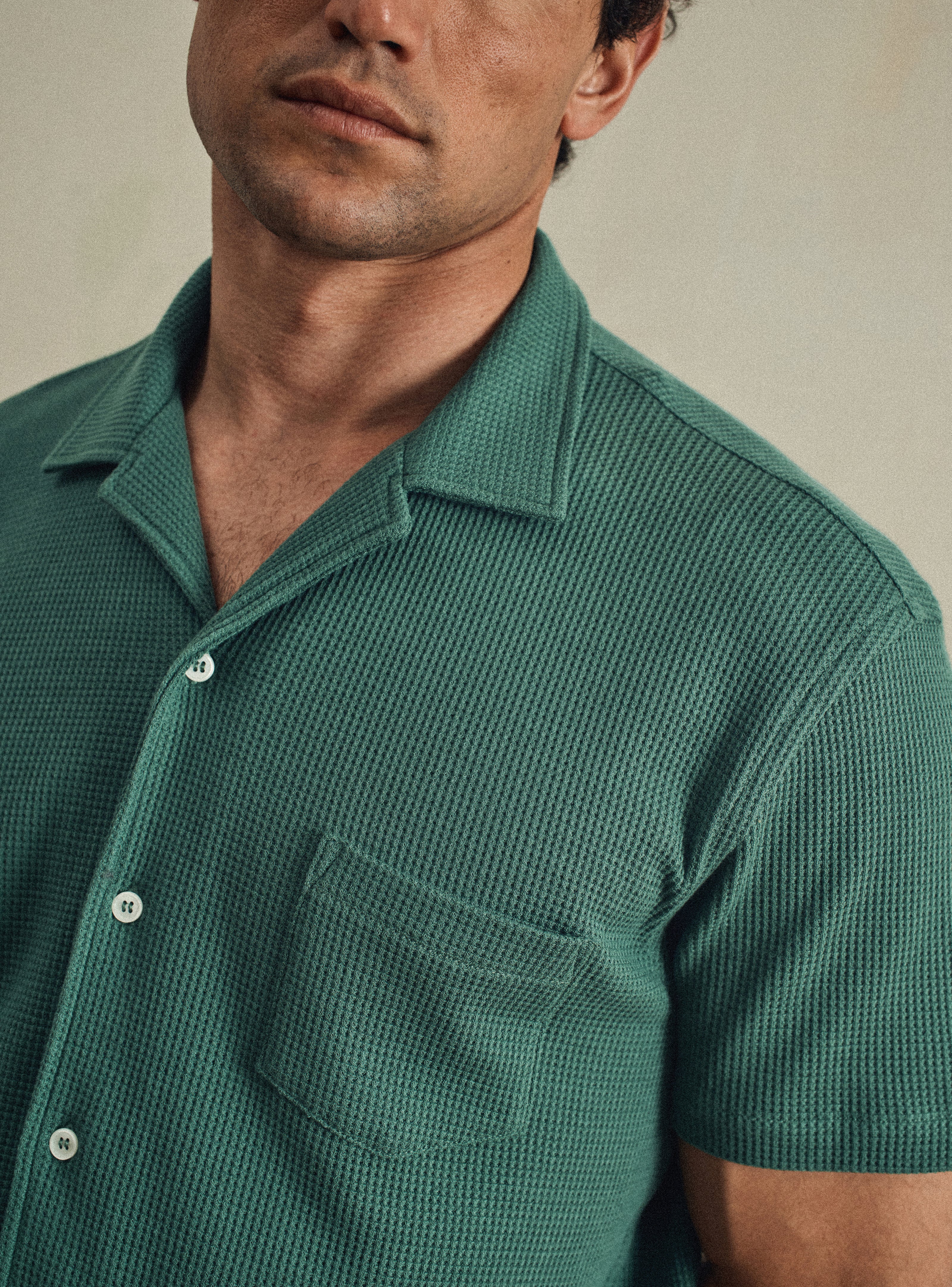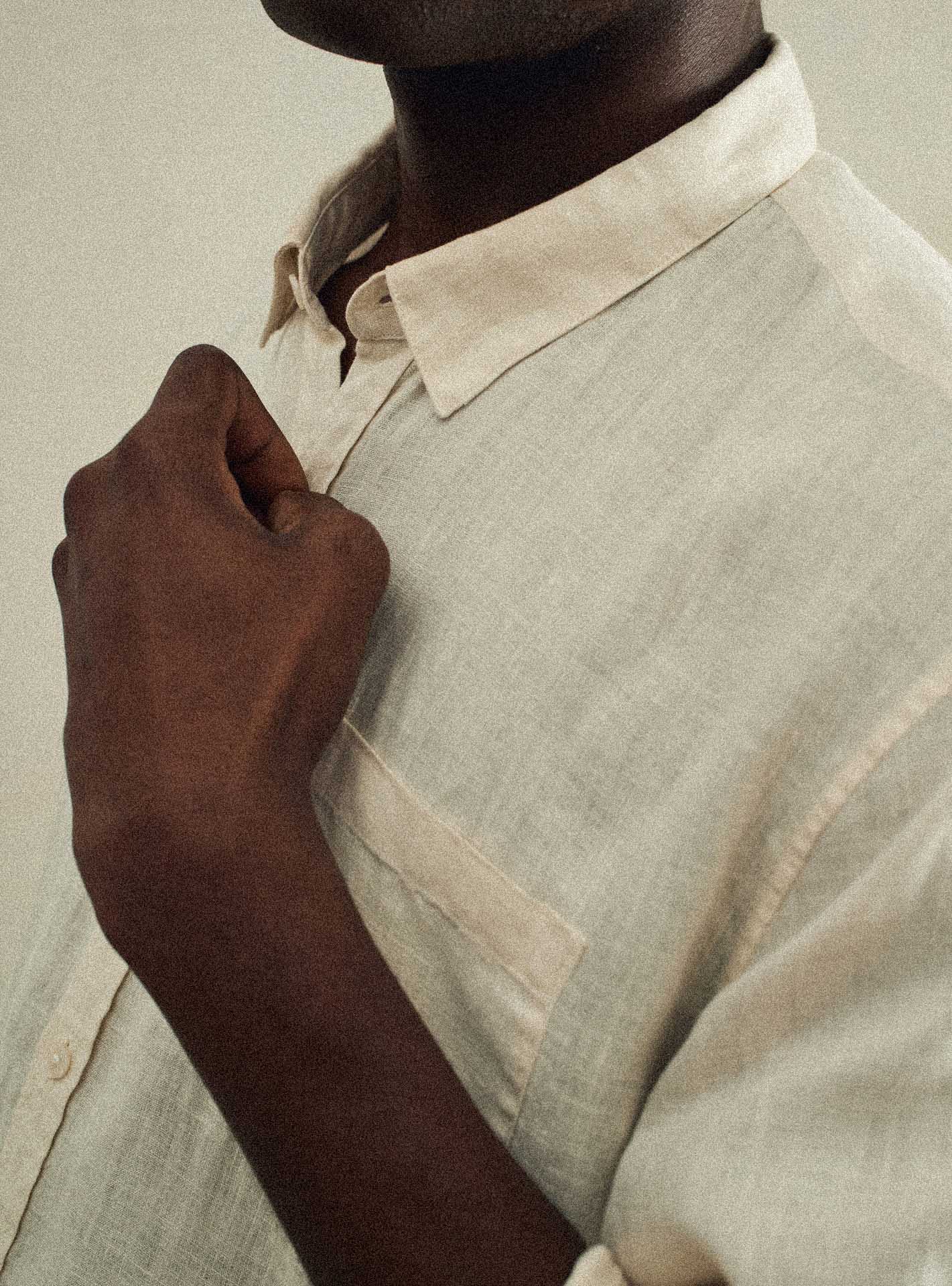 1 modèle iconique : la chemise Harlem, et sa coupe droite avec un bas droit, son petit col hawaïen sobre et sa poche plaquée poitrine.