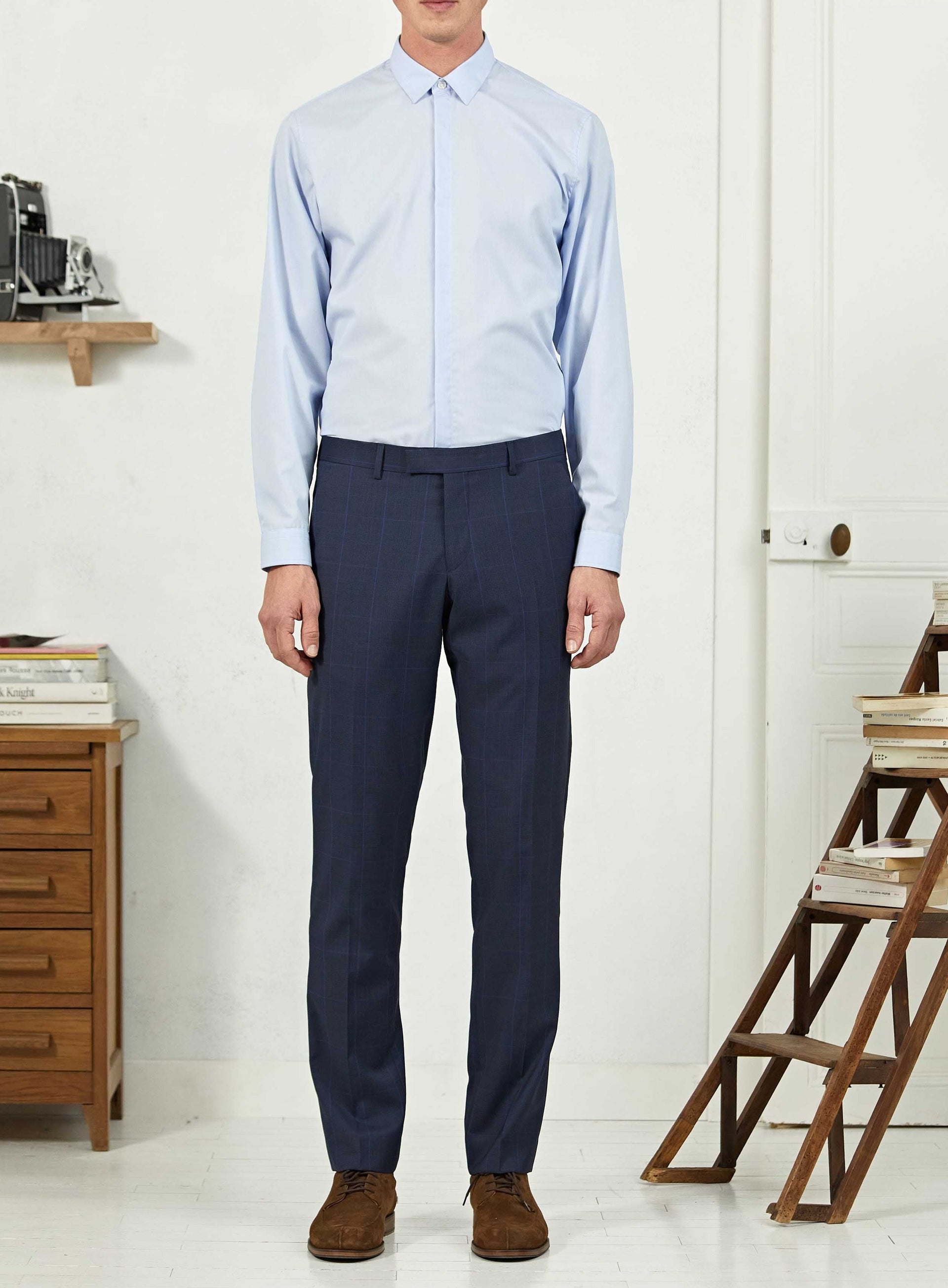 - Pantalon sans pince, avec pli cassé