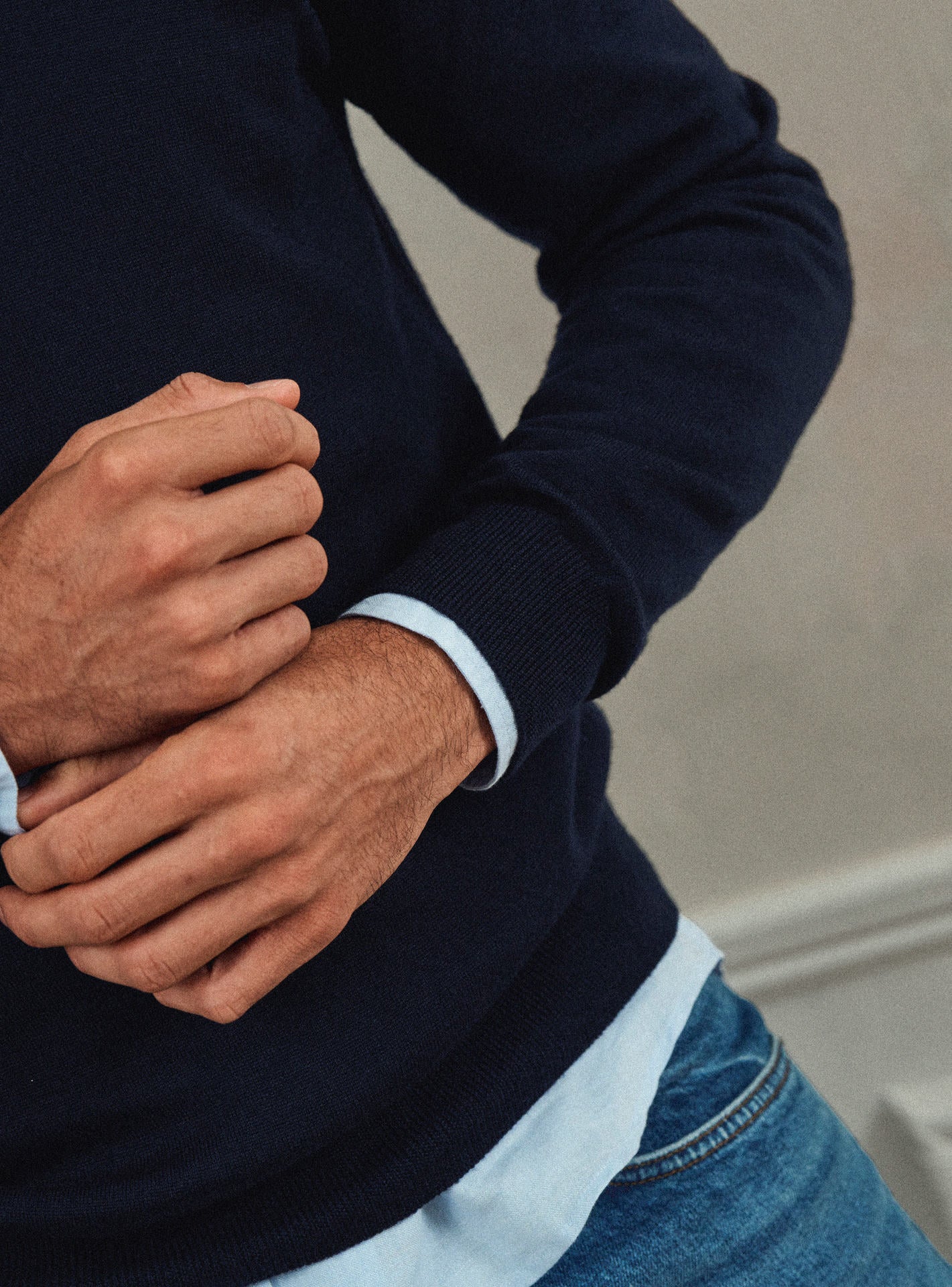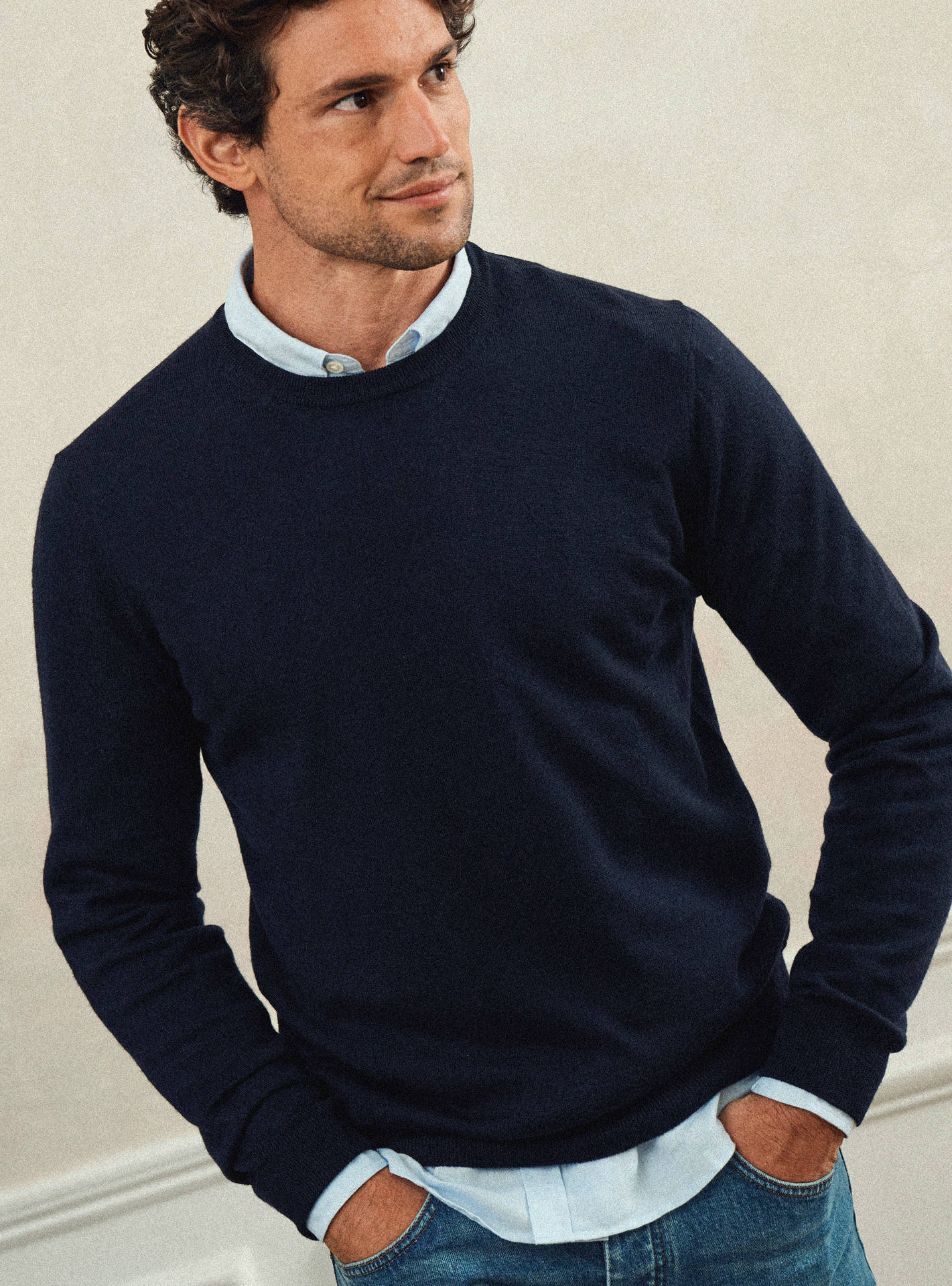 - Pull à col rond bleu marine